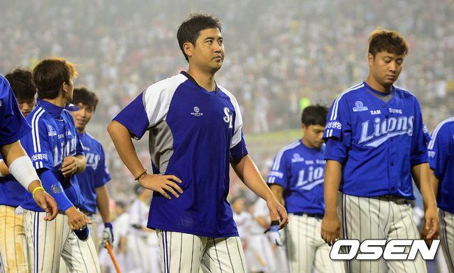 15일 오후 서울 잠실구장에서 열린 '2014 한국야쿠르트 세븐 프로야구' LG 트윈스와 삼성 라이온즈의 경기 종료 후 장원삼이 팬들에게 인사 후 그라운드를 빠져나가고 있다.