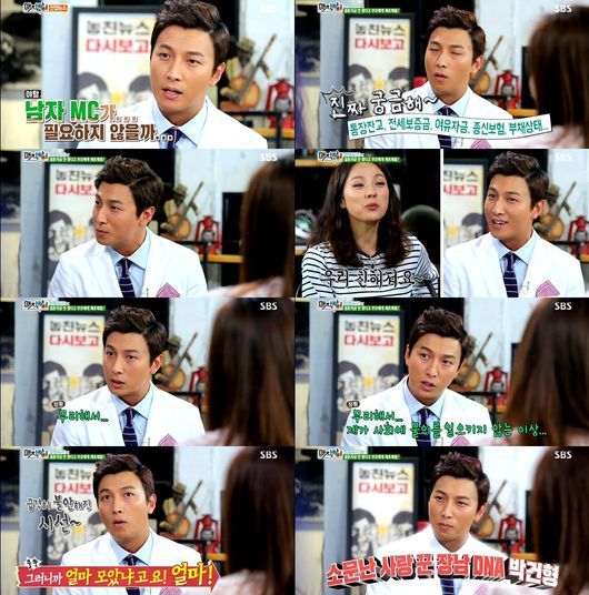 뒤이은 MC들과의 토크에서도 그는 범상치 않은 4차원 매력을 발산했다. 이날 방송에서 홍진경과 봉태규는 “엄마에게 수술 사실을 알리지 않은 것은 불효일까요”라는 시청자의 물음에 자신의 수술 경험담을 솔직히 털어 놓으며 안타까움을 자아냈다. 이를 가만히 듣고 있던 박건형은 “고등학교 때 패싸움을 해서 경찰이 부모님 모시고 오라 해 전화를 해야 하나 말아야 하나 고민됐다”며