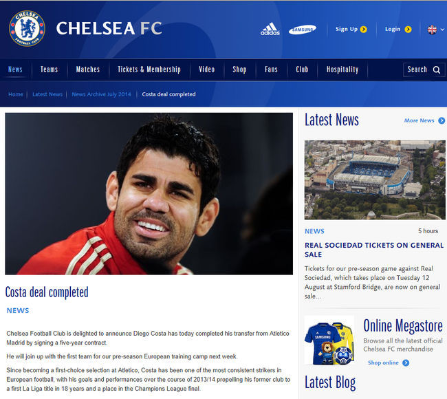 첼시가 디에구 코스타(26, 스페인)와 계약에 성공하면서 영입을 완료지었다.