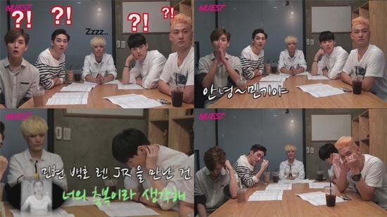 그룹 뉴이스트가 가족들의 영상편지를 받고 눈물을 펑펑 쏟았다.