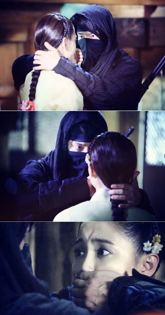 뜻하지 않게 긴박한 순간에 사랑하는 여인과 마주한 윤강은 너무 놀란 수인의 입을 틀어막고 그의 눈을 숨죽이며 바라봤다. 지난 ‘조선 총잡이’ 2회분에서 최원신의 추격에 쫓기며 외딴 폐가에 몸을 숨겼던 박윤강과 정수인은 당시에도 입을 막고 몸을 숨겨 위기를 모면한 바 있기에 두 사람의 아슬아슬한 로맨스 2탄에 더욱 기대가 쏠린다.