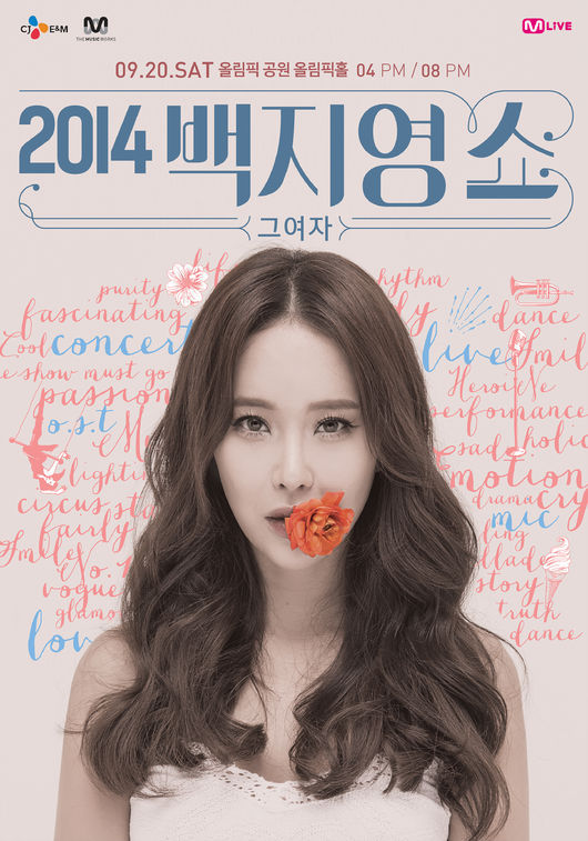 ‘2014년 백지영쇼-그 여자’는 오는 9월 20일 서울 올림픽공원 올림픽홀에서 개최될 예정이며 티켓은 16일 오후 3시, 인터파크를 통해 오픈된다.