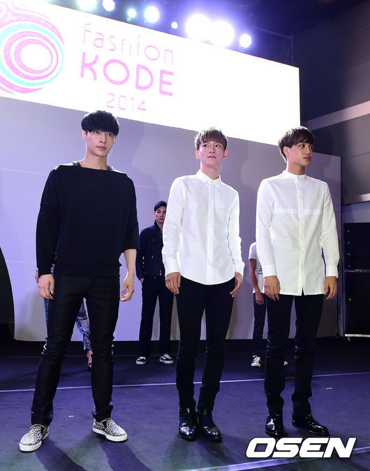 홍보대사로 위촉된 아이돌 그룹 엑소(EXO) 레이, 첸, 카이가 참석해 '국민과 업계가 함께하는 코드 퍼레이드'를 주제로 런웨이를 펼치고 있다.