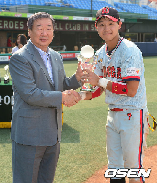 윤영수는 이날 경기 맹활약을 포함해 이번 대회 5경기서 4할3푼8리(16타수 7안타)의 타율과 6개의 도루를 기록하며 리드오프로서 제 몫을 다했다. 팀을 우승으로 이끈 윤영수는 2014 KBO총재기 전국대학야구대회 최우수선수로 선정됐다. 이와 함께 도루 6개로 이 부문 1위를 차지, 도루상도 차지하는 영예를 안았다.