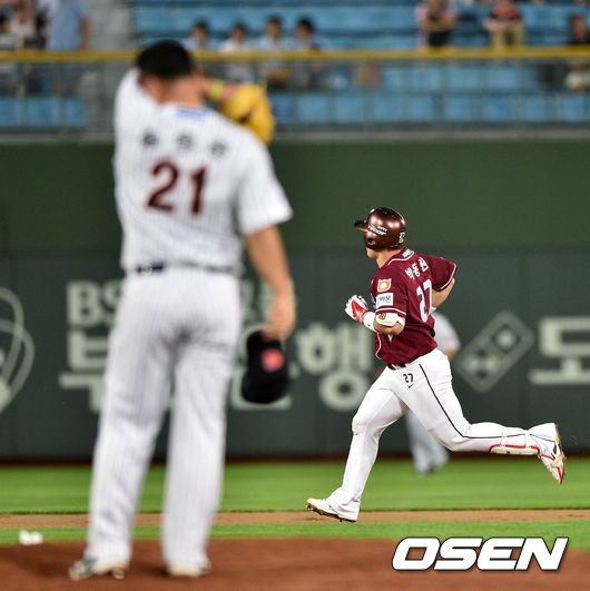 7회초 1사에서 넥센 박동원이 좌월 솔로 홈런을 치고 그라운드를 돌고 있다.