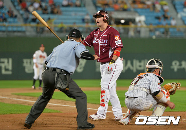 8회초 1사에서 넥센 박병호가 삼진으로 물러나고 있다.