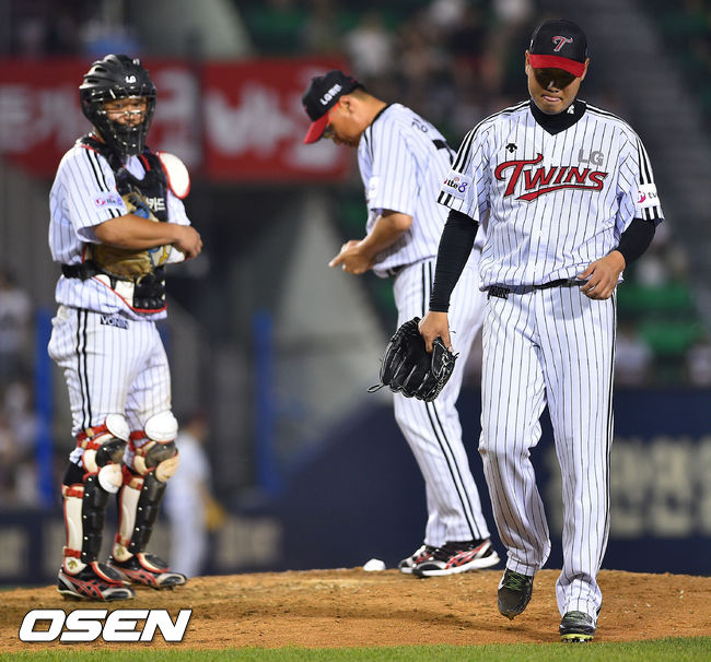 16일 오후 서울 잠실구장에서 열린 2014 한국야쿠르트 세븐 프로야구 LG 트윈스와 삼성 라이온스의 경기, 6회초 LG 선발투수 류제국이 교체되고 있다.