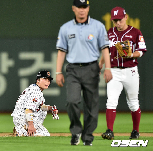9회말 2사 1루에서 도루에 실패한 롯데 용덕한이 아쉬운 표정을 짓고 있다. /sunday@osen.co.kr