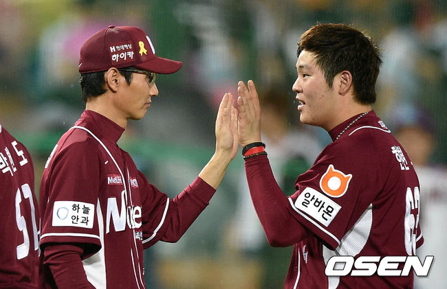 경기 종료 후 넥센 염경엽 감독이 한현희와 승리의 기쁨을 나누고 있다. /sunday@osen.co.kr