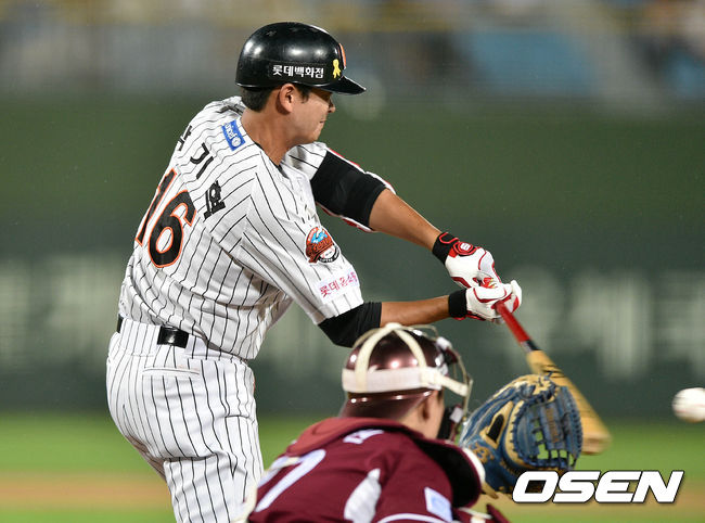 9회말 2사 1루에서 롯데 박기혁이 스윙을 하고 있다. /sunday@osen.co.kr