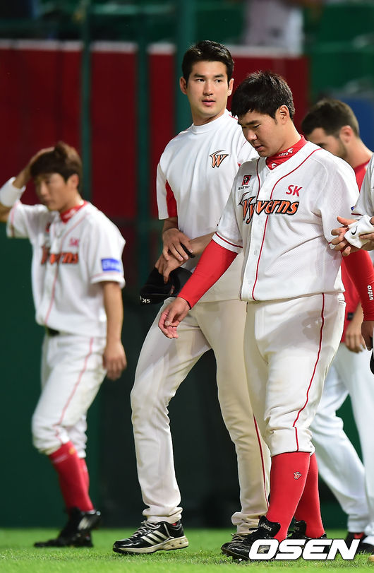 경기를 마치고 SK 선수들이 아쉬운 표정으로 퇴장하고 있다. / rumi@osen.co.kr