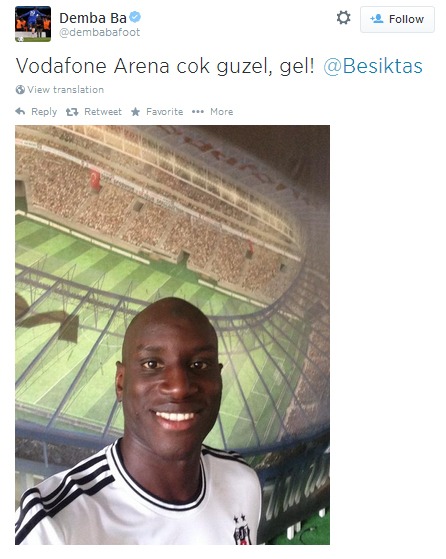 뎀바 바는 16일(한국시간) 자신의 트위터에 터키어로 "보다폰 아레나 아주 아름답다. 베식타스에서"라고 적으며 환하게 웃는 셀프카메라 사진을 찍어 올렸다.