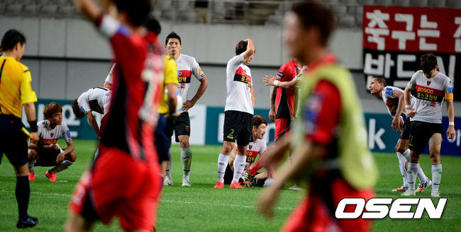 경기후 포항 선수들이 패배를 아쉬워하고 있다./ jpnews@osen.co.kr
