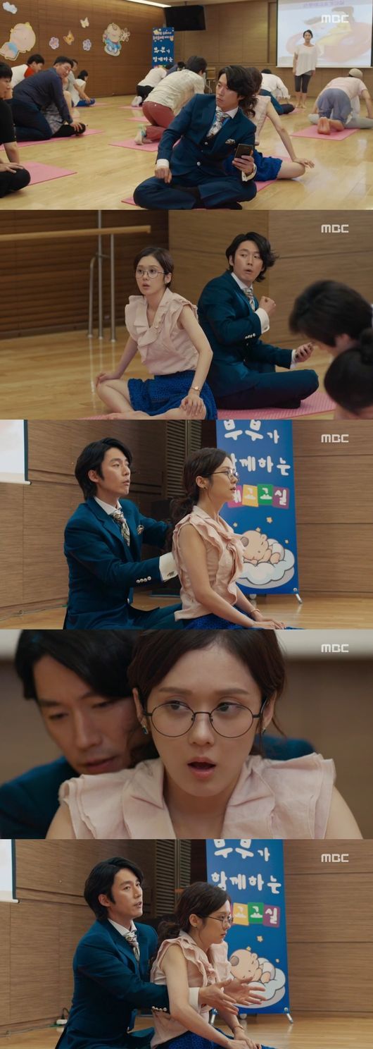 하지만 ‘부부가 함께 하는 태교 교실’에서 건과 미영 부부는 함께가 아니었다. 건은 등을 돌리고 앉아 핸드폰을 보고 있었고, 미영은 뚱하게 앉아 시간을 보냈다. 결국 이를 본 담당 선생은 두 사람을 ‘태교 부부 모댈’로 선택해 교실 앞으로 불렀다.