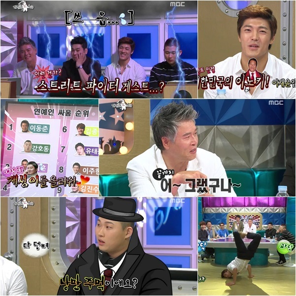 주먹 특집인 것은 확실했다. 이동준은 과거 11 대 1로 싸운 얘기를 하는가 하면 연예인 싸움 순위를 매겨 눈길을 끌었다. 이동준은 자신을 순위 1위에 당당히 올리고 2위로 강호동, 3위로 홍기훈, 4위 최재성, 5위 이훈 등 차례로 나열하며 이날 방송의 취지(?)를 분명히 했다. 이동준은 또, 과거 이종격투기로 데뷔를 할까 고민했었다며 싸움과 결투에 대한 자신감을 드러냈다.