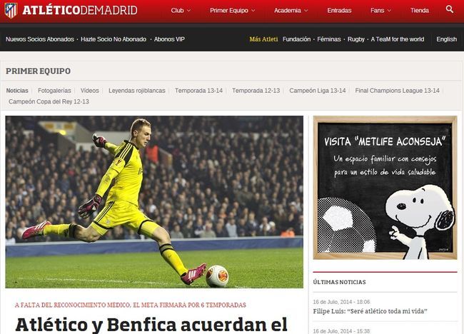 아틀레티코 마드리드 공식 홈페이지.