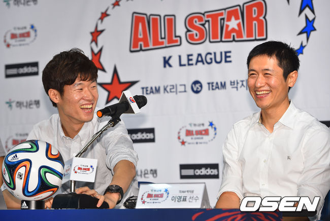 한국프로축구연맹은 17일 서울 신문로 축구회관에서 K리그 올스타 with 팀 박지성 공식 기자회견을 개최했다. 팀 K리그를 대표하는 김승규(울산) 차두리(서울), 팀 박지성의 대표 박지성과 이영표가 참석해 오는 25일 서울월드컵경기장에서 열리는 이번 K리그 올스타전에 임하는 소감과 각오를 전했다.