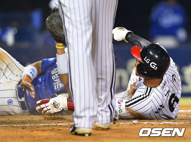 LG 내야수 박경수가 절묘한 홈스틸로 득점에 성공, LG의 전반기 마지막 경기 대승을 이끌었다.