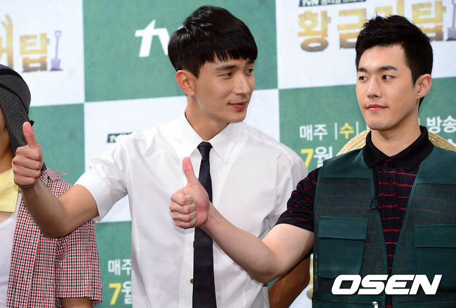 17일 오후 서울 CGV 청담씨네시티 엠큐브에서 진행된 tvN 드라마 '황금거탑' 제작발표회에 참석한 배우 이용주와 김호창이 포토타임을 갖고 있다.
