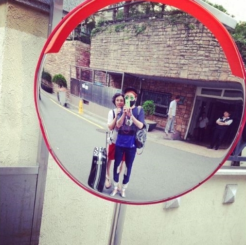 사진 속 이홍기는 도로반사경에 비친 자신과 엄마의 모습을 찍고 있다. 특히 이홍기는 파란색 티셔츠와 바지를 입고 색이 들어간 선글라스를 낀 채 남다른 패션 감각을 자랑했다.