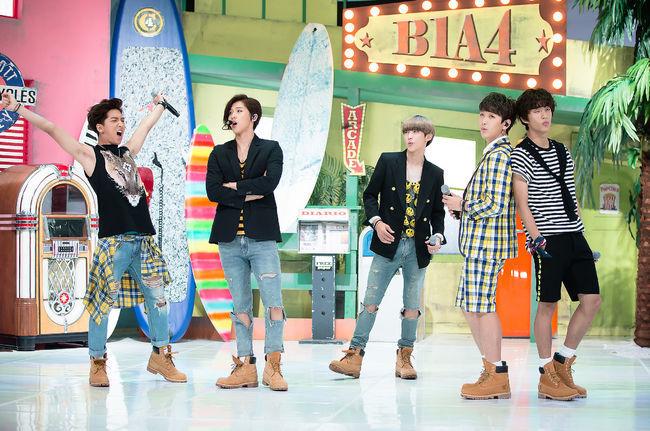 그룹 B1A4가 17일 오후 서울 상암동 CJ E & M에서 진행된 Mnet '엠카운트다운'(이하 엠카) 생방송에서 멋진 무대를 선보이고 있다.