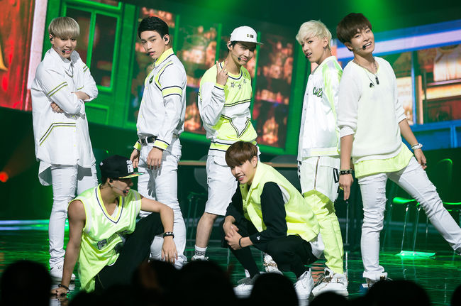 갓세븐이 17일 오후 서울 상암동 CJ E & M에서 진행된 Mnet '엠카운트다운'(이하 엠카) 생방송에서 멋진 무대를 선보이고 있다.
