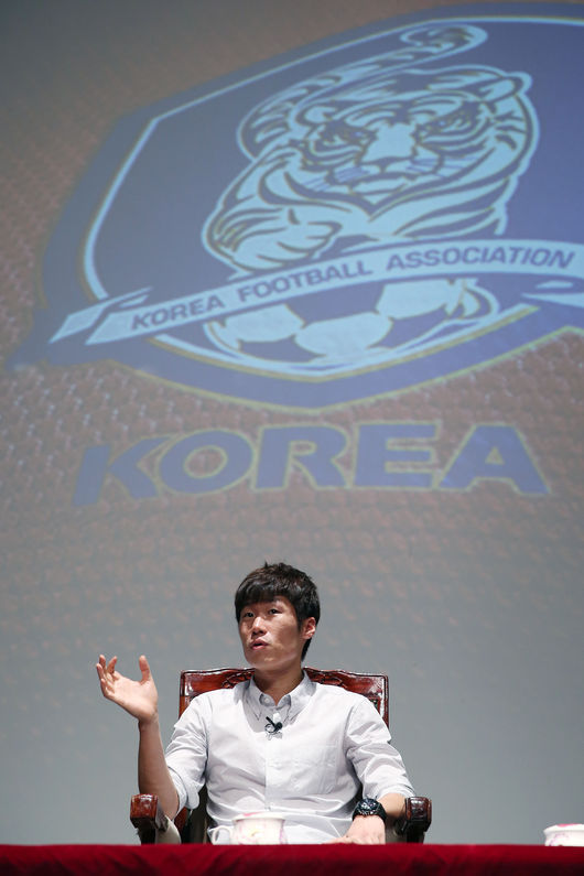 한국 축구의 레전드 박지성과 그의 아버지 박성종 씨는 지난 17일 오후 경기도 용인 경희대 국제캠퍼스 예술디자인대학 대공연장에서 대한축구협회가 주최한 '박지성, 태극마크, 그 이름을 빛내다'라는 주제의 강연에 참석했다.