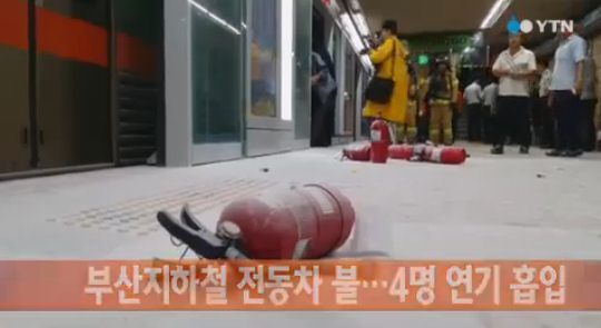 이에 부산지하철공사는 전동차 운행을 중단하고 승객들을 모두 대피시켰다. 화재 현장에서는 연기가 심하게 나면서 연기를 흡입한 승객 4명이 병원으로 옮겨졌지만, 상태는 위독하지 않은 것으로 알려졌다. 승무원과 출동한 소방대원이 진화에 나서 전동차에 난 불은 5분 만에 모두 꺼졌다.
