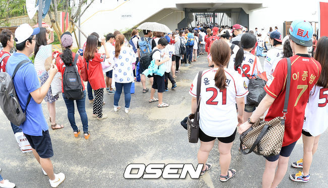 18일 오후 광주 광주-기아 챔피언스 필드에서 열리는 '2014 한국야쿠르트 세븐 프로야구 올스타전'에 앞서 야구팬들이 경기 시작을 기다리고 있다.