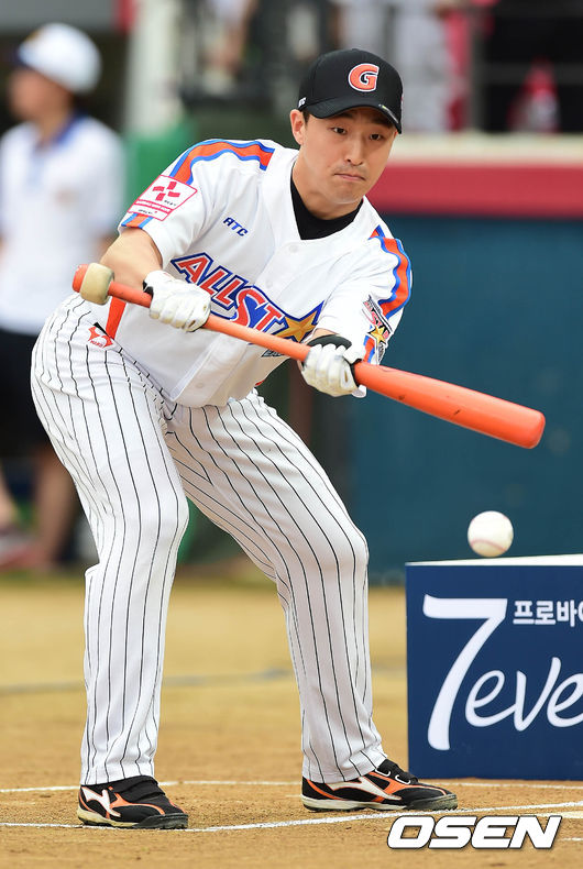 18일 오후 광주 광주-기아 챔피언스 필드에서 열린 '2014 한국야쿠르트 세븐 프로야구 올스타전' 번트왕 대회에서 손아섭이 번트를 하고 있다.