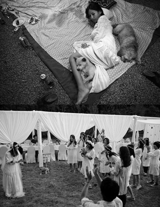 사진에는 결혼식을 앞두고 드레스를 입어보는 이효리, 화관을 쓰고 모여 있는 친구들, 축가를 부르는 디자이너 스티브J 요니P 부부, 턱시도를 입은 이상순의 모습 등이 담겨 있었다. 또 이효리-이상순 부부가 가족들, 지인들과 함께 화기애애한 결혼식을 치르며 행복해 하는 모습을 엿볼 수 있었다.