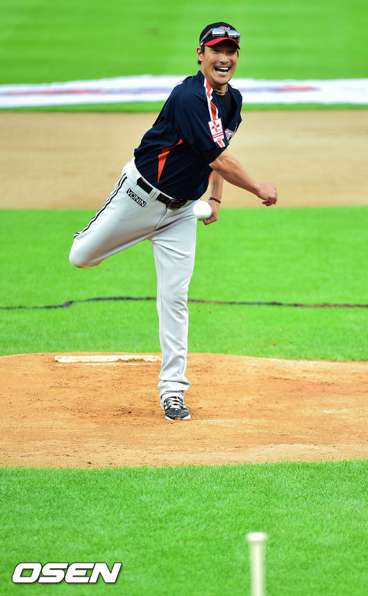 18일 오후 광주 광주-기아 챔피언스 필드에서 열리는 '2014 한국야쿠르트 세븐 프로야구 올스타전', 퍼펙트 피처 행사에서 우승한 LG 이동현이 공을 던지고 있다.