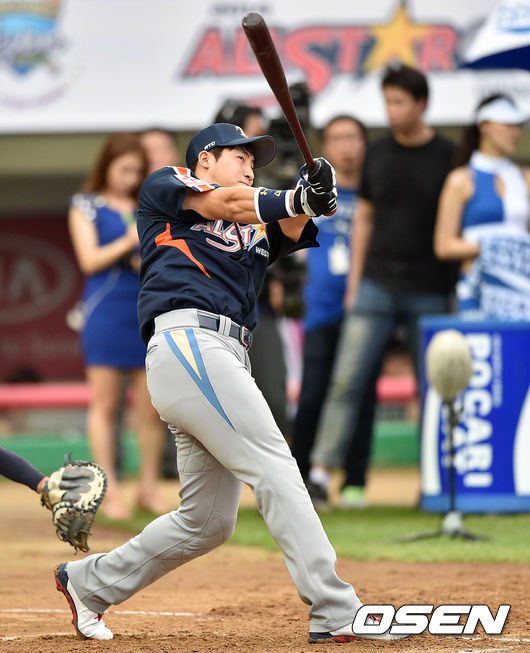 18일 오후 광주 광주-기아 챔피언스 필드에서 열리는 '2014 한국야쿠르트 세븐 프로야구 올스타전'에 앞서 나성범이 홈런왕 대회에서 타격을 하고 있다.