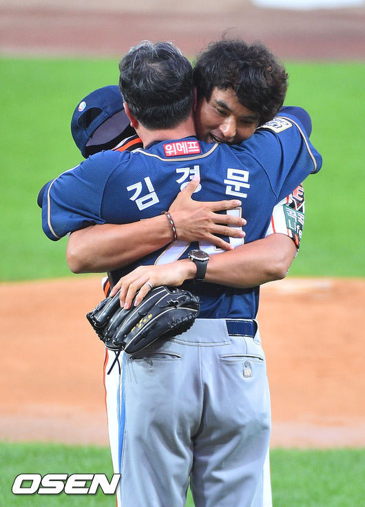 박찬호는 "김경문 감독님은 야구를 시작하면서부터 꿈을 준 분이다. 제가 미국에 있을 때 높고 먼 선배님으로 만났는데도 다정하게 대해주셨다. 감독님이 연수하고 계실 때였는데, 당시 힘들어하는 저에게 용기를 주셨다. 후배들이 저를 이 자리에 서게 해줬다. 전 선배님께 제 마지막 공을 받아달라고 부탁했다. 격식을 떠나 공을 받아주신 것에 존경을 표한다"고 덧붙였다.