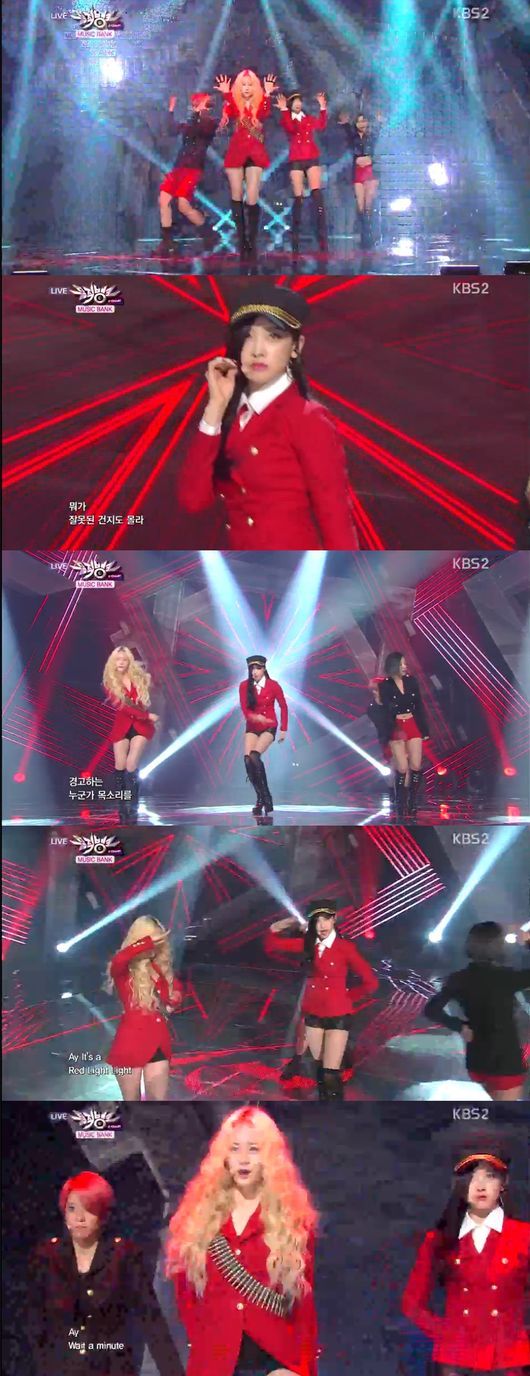 에프엑스는 18일 방송된 KBS 2TV '뮤직뱅크'에서 멤버 설리의 빈자리에도 불구하고 강렬한 카리스마로 타이틀곡 '레드 라이트' 무대를 꾸몄다.