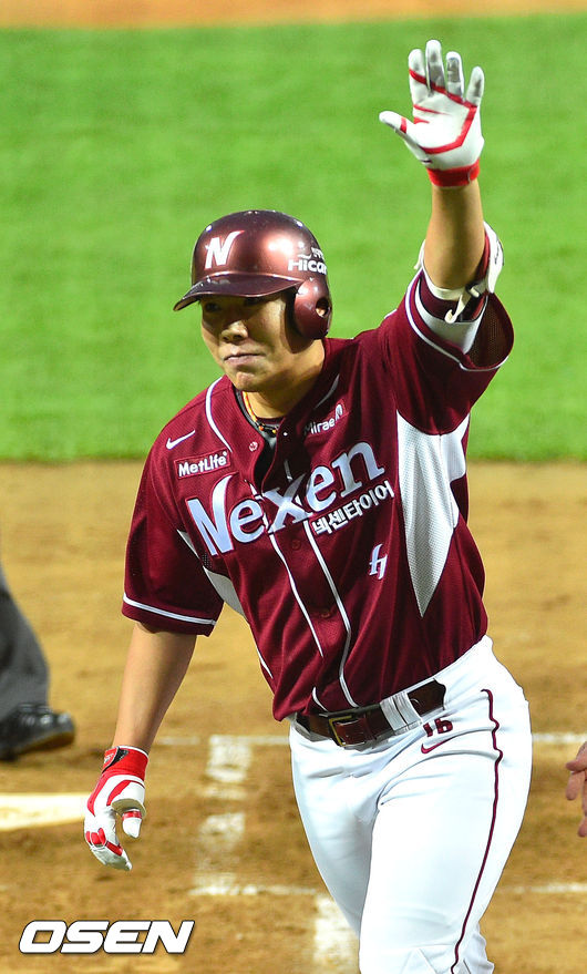 18일 오후 광주 광주-기아 챔피언스 필드에서 열리는 '2014 한국야쿠르트 세븐 프로야구 올스타전' 웨스턴과 이스턴의 경기 2회초 웨스턴 선두타자 강정호가 선취 2점 홈런을 날리고 베이스를 밟고 있다.