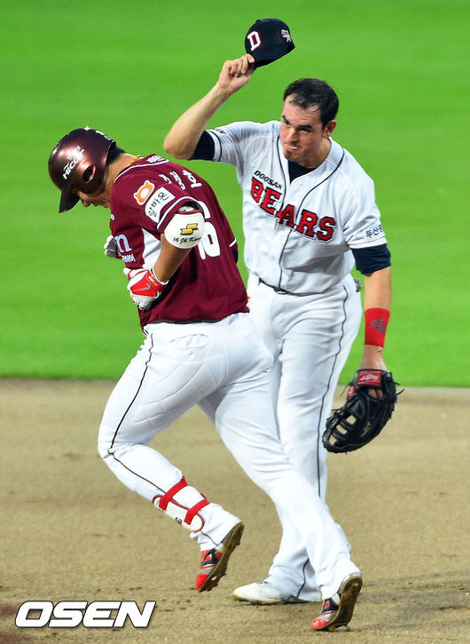 18일 오후 광주 광주-기아 챔피언스 필드에서 열리는 '2014 한국야쿠르트 세븐 프로야구 올스타전' 웨스턴과 이스턴의 경기 2회초 웨스턴 선두타자 강정호가 선취 2점 홈런을 날리고 베이스를 돌고 있다.