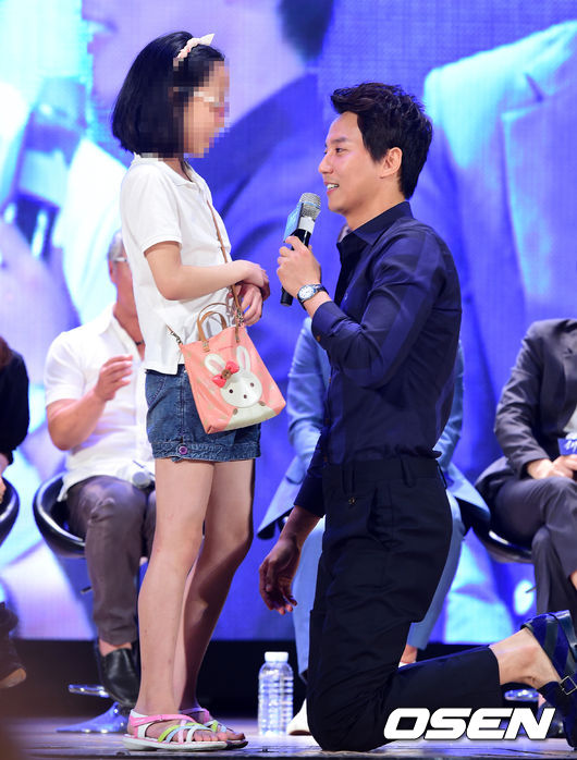 배우 김남길이 팬과 이벤트를 하고 있다.