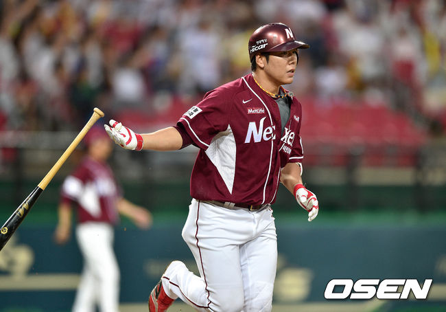 2회초 무사 2루에서 서군 강정호가 투런 홈런을 치고 배트를 던지고 있다.