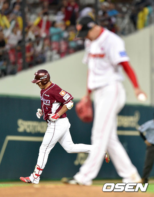 2회초 무사 2루에서 서군 강정호가 투런 홈런을 치고 그라운드를 돌고 있다.