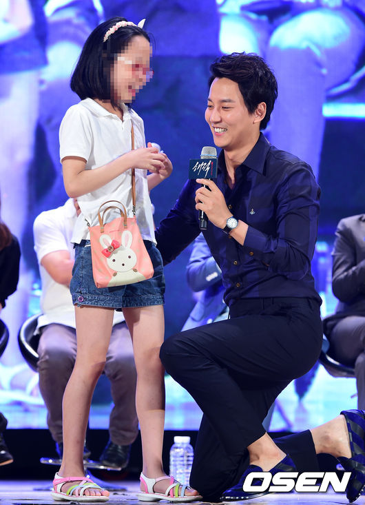 배우 김남길이 팬과 아이컨텍 이벤트를 하고 있다.