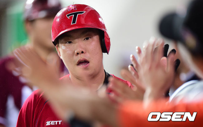 18일 오후 광주 광주-기아 챔피언스 필드에서 열린 '2014 한국야쿠르트 세븐 프로야구 올스타전' 5회초 1사 1,2루 나지완이 스리런홈런을 치고 덕아웃에서 동료들과 하이파이브를 하고 있다.