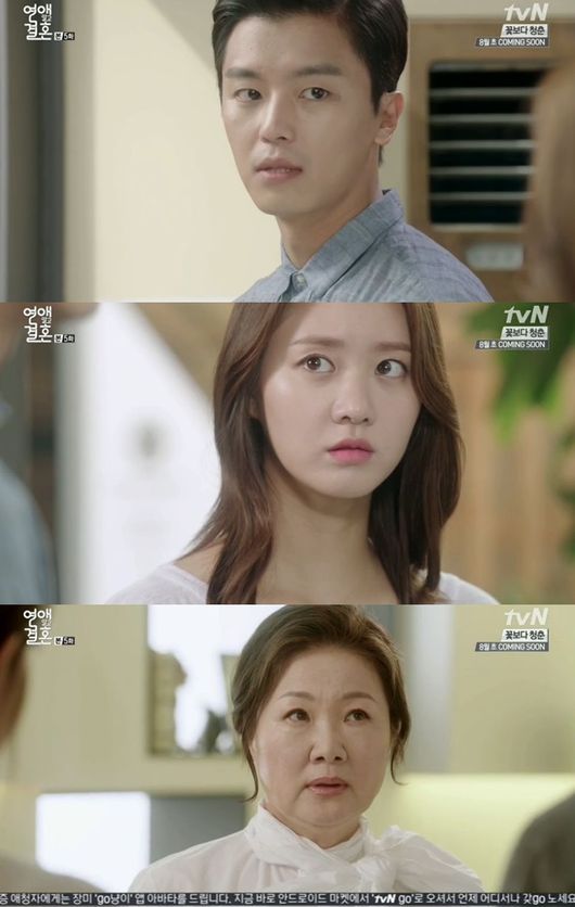 18일 오후 방송된 케이블채널 tvN 금토드라마 '연애말고 결혼'(극본 주화미, 연출 송현욱) 5회 '오직 너에게만 할 수 있는 말'에서는 계약연애를 들키지 않으려는 공기태(연우진 분)와 주장미(한그루 분)의 노력이 그려졌다.