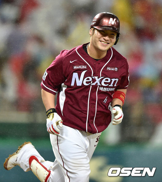 8회초 2사에서 서군 박병호가 좌월 솔로 홈런을 치고 미소를 지으며 그라운드를 돌고 있다.