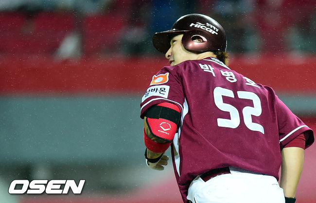 18일 오후 광주 광주-기아 챔피언스 필드에서 열린 '2014 한국야쿠르트 세븐 프로야구 올스타전' 8회초 2사 박병호가 솔로 홈런을 치고 날아가는 타구를 바라보고 있다.