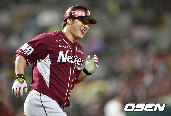 8회초 2사에서 서군 박병호가 좌월 솔로 홈런을 치고 미소를 지으며 그라운드를 돌고 있다.