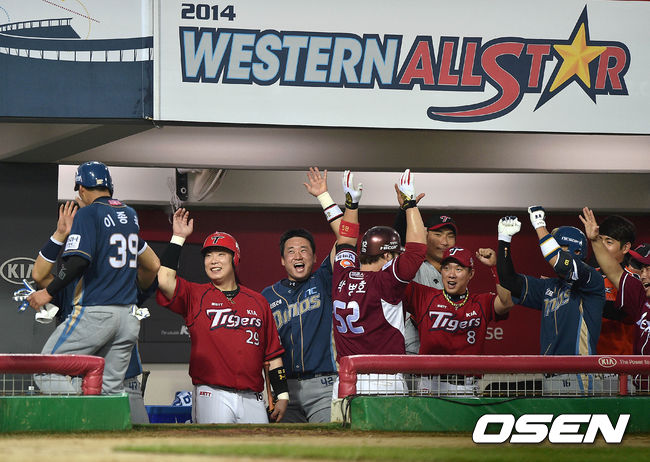 웨스턴팀이 18일 광주-기아 챔피언스필드에서 열린 2014 한국야쿠르트 세븐 프로야구 올스타전에서 박병호와 나지완의 스리런포 등 홈런 5개 포함 18안타로 이스턴팀을 두들겨 13-2로 완승을 거두었다. 올스타 역사상 한 팀 최다득점 신기록이었다.