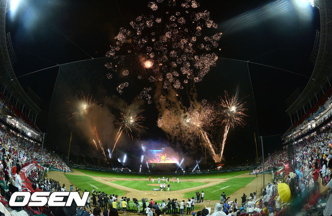 경기종료 후 불꽃놀이가 펼쳐지고 있다./ soul1014@osen.co.kr