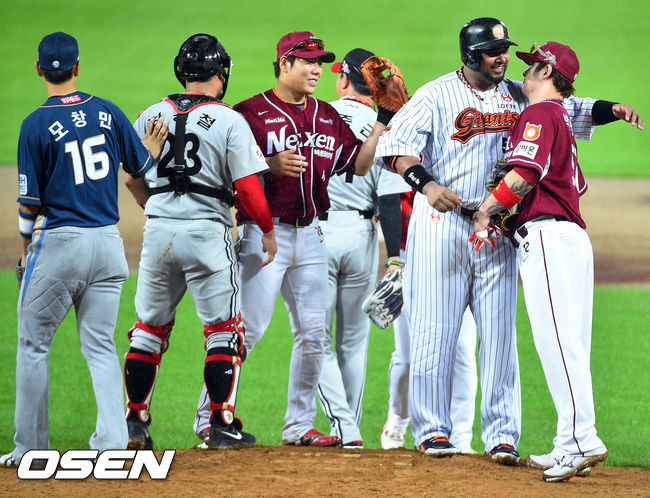 경기종료 후 양팀 선수들이 인사를 하고 있다./ soul1014@osen.co.kr