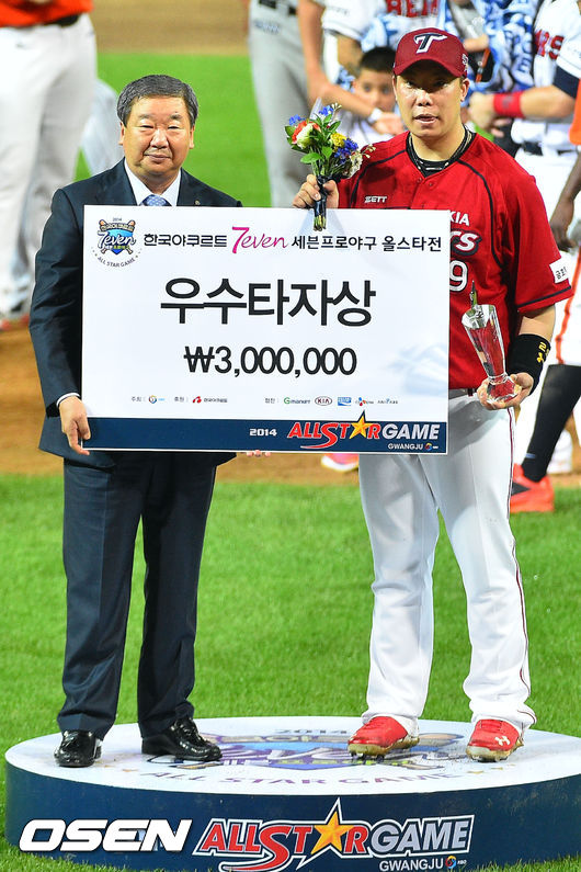 웨스턴팀이 18일 광주-기아 챔피언스필드에서 열린 2014 한국야쿠르트 세븐 프로야구 올스타전에서 박병호와 나지완의 스리런포 등 홈런 5개 포함 18안타로 이스턴팀을 두들겨 13-2로 완승을 거두었다. 올스타 역사상 한 팀 최다득점 신기록이었다.
